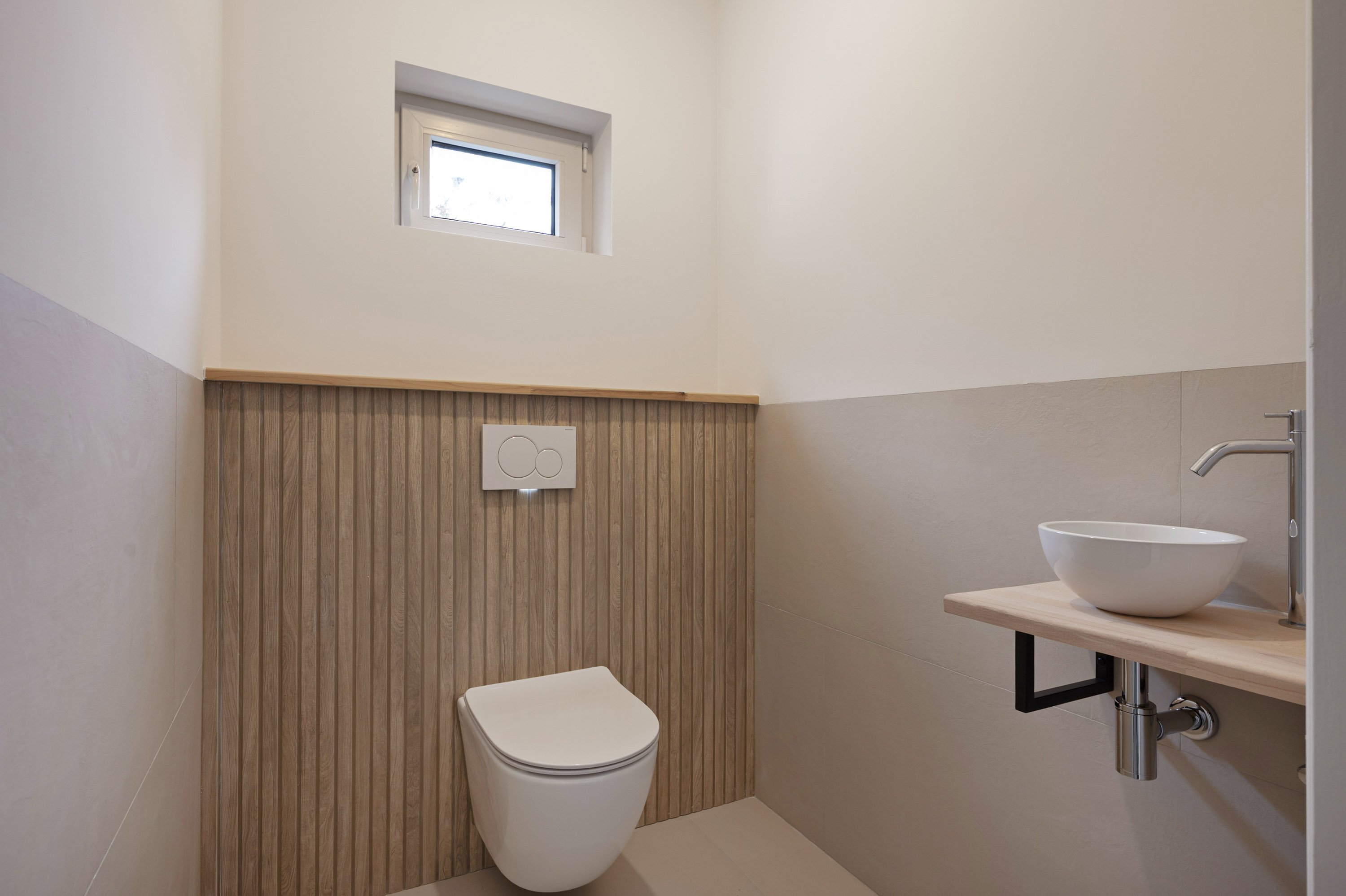 Entree, hal, gemoderniseerde meterkast. toiletruimte met hangcloset en fontein.