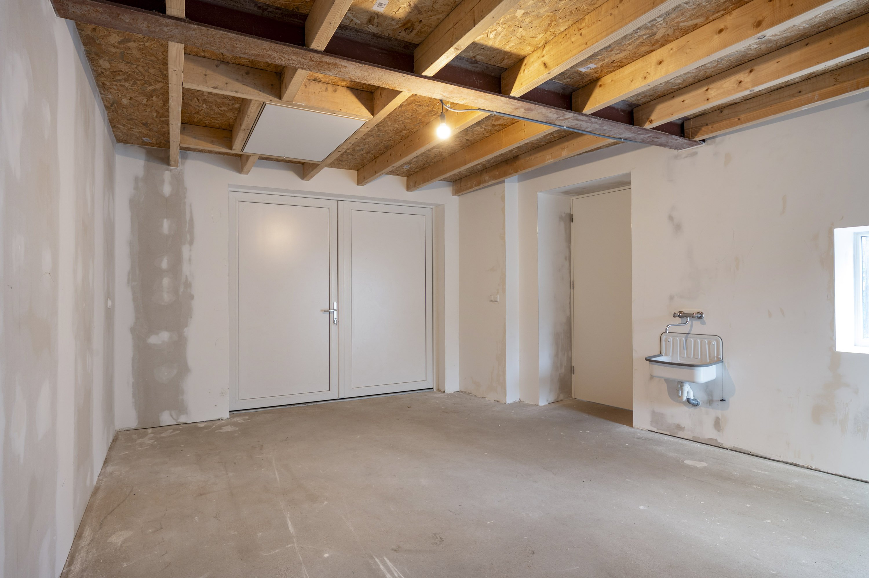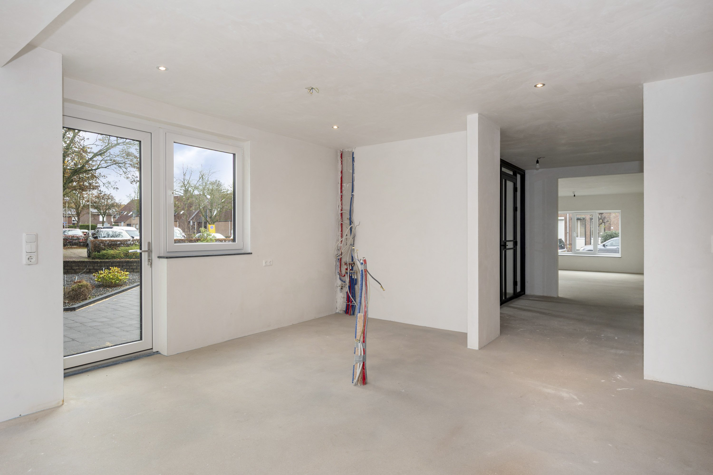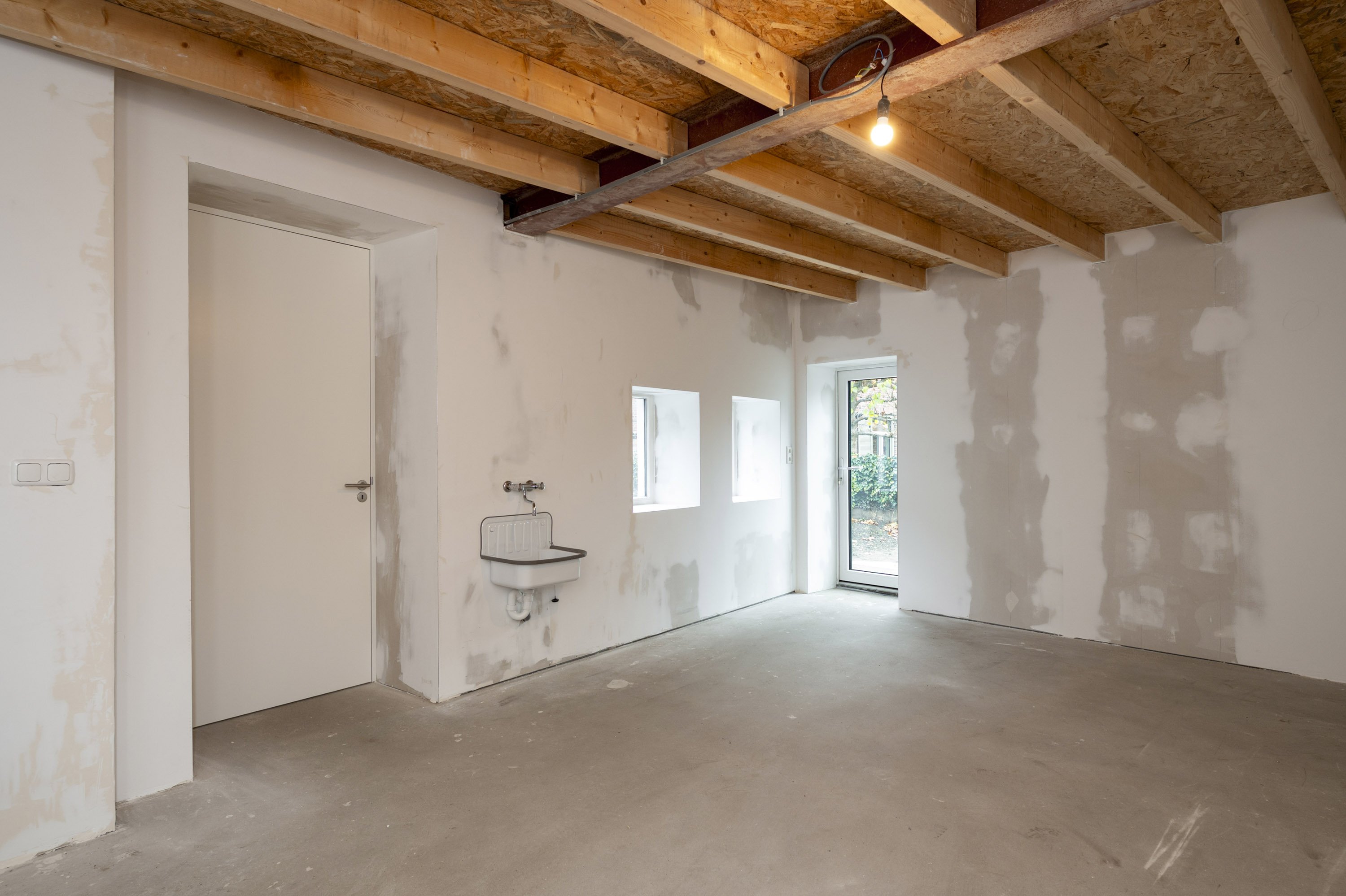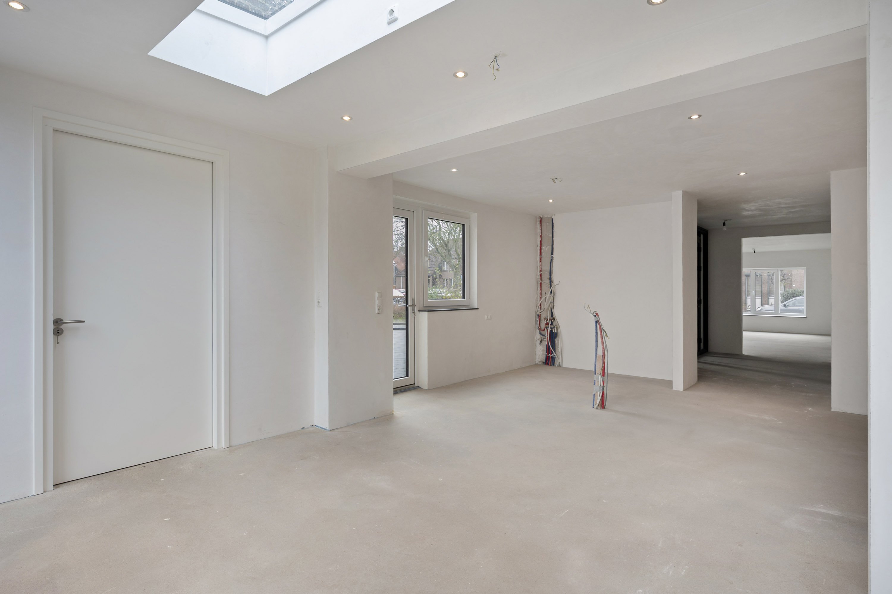De vloer op de begane grond en de keuken moeten naar eigen smaak nog geplaatst/gelegd worden.