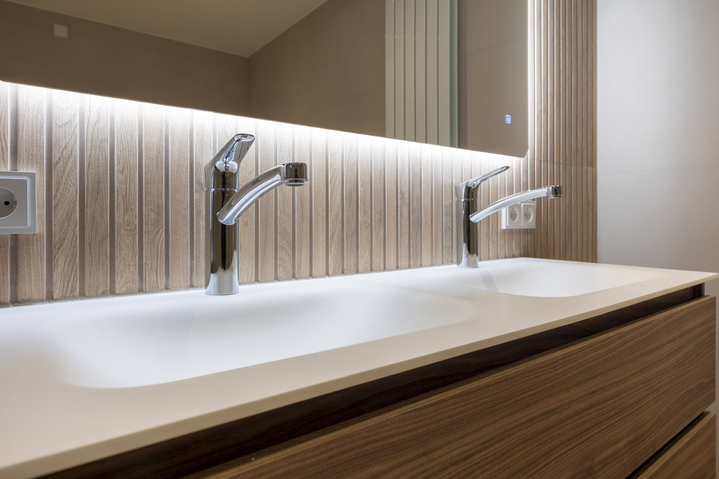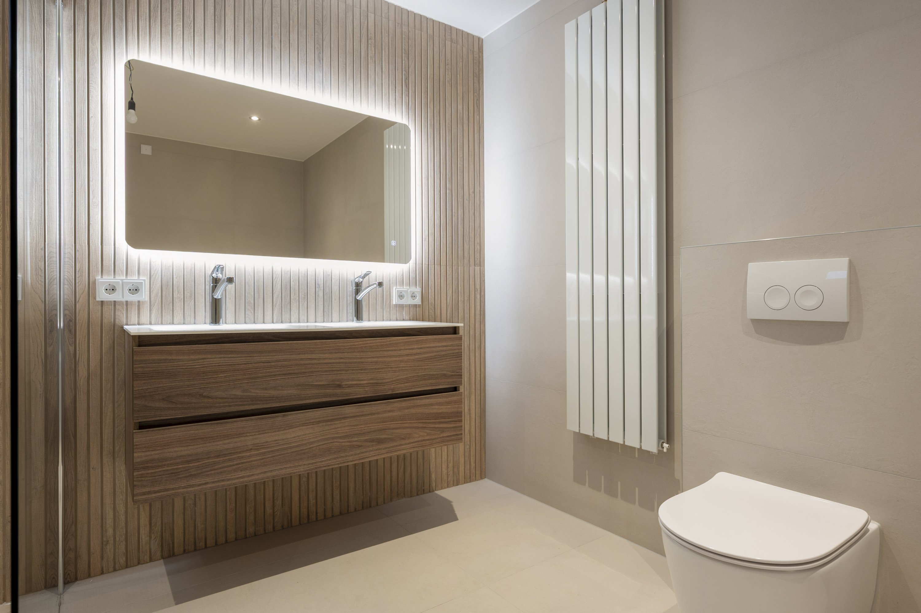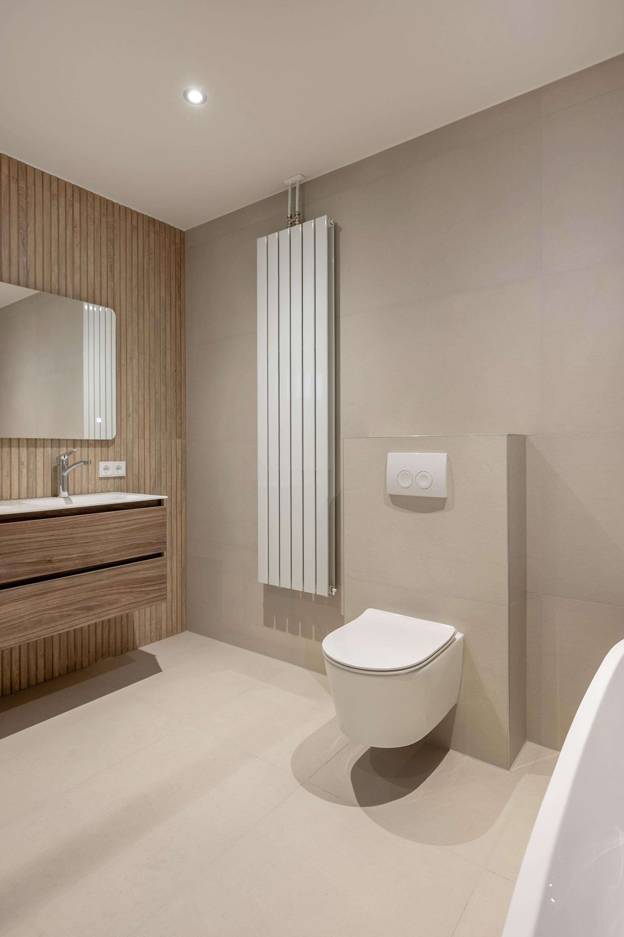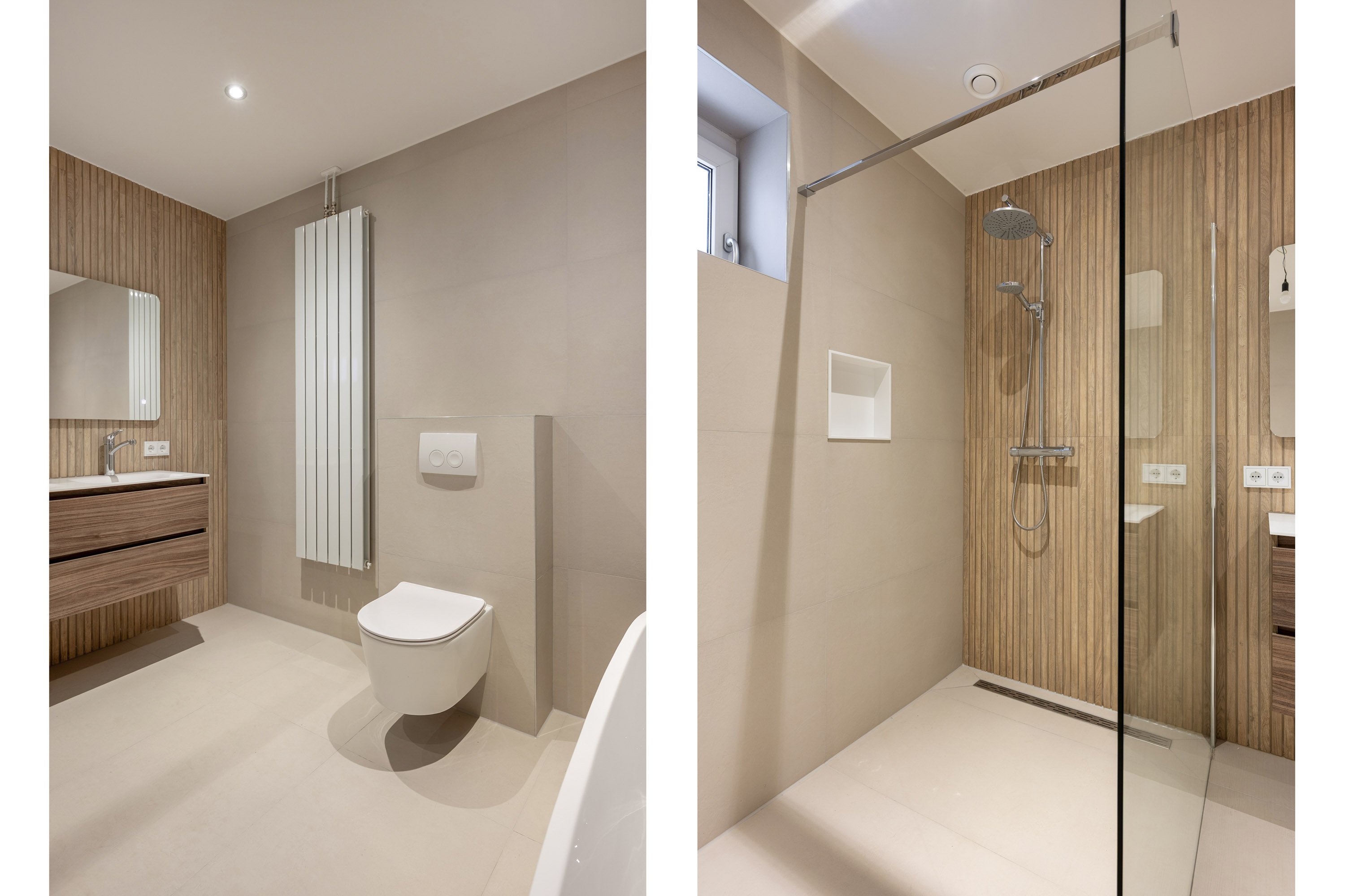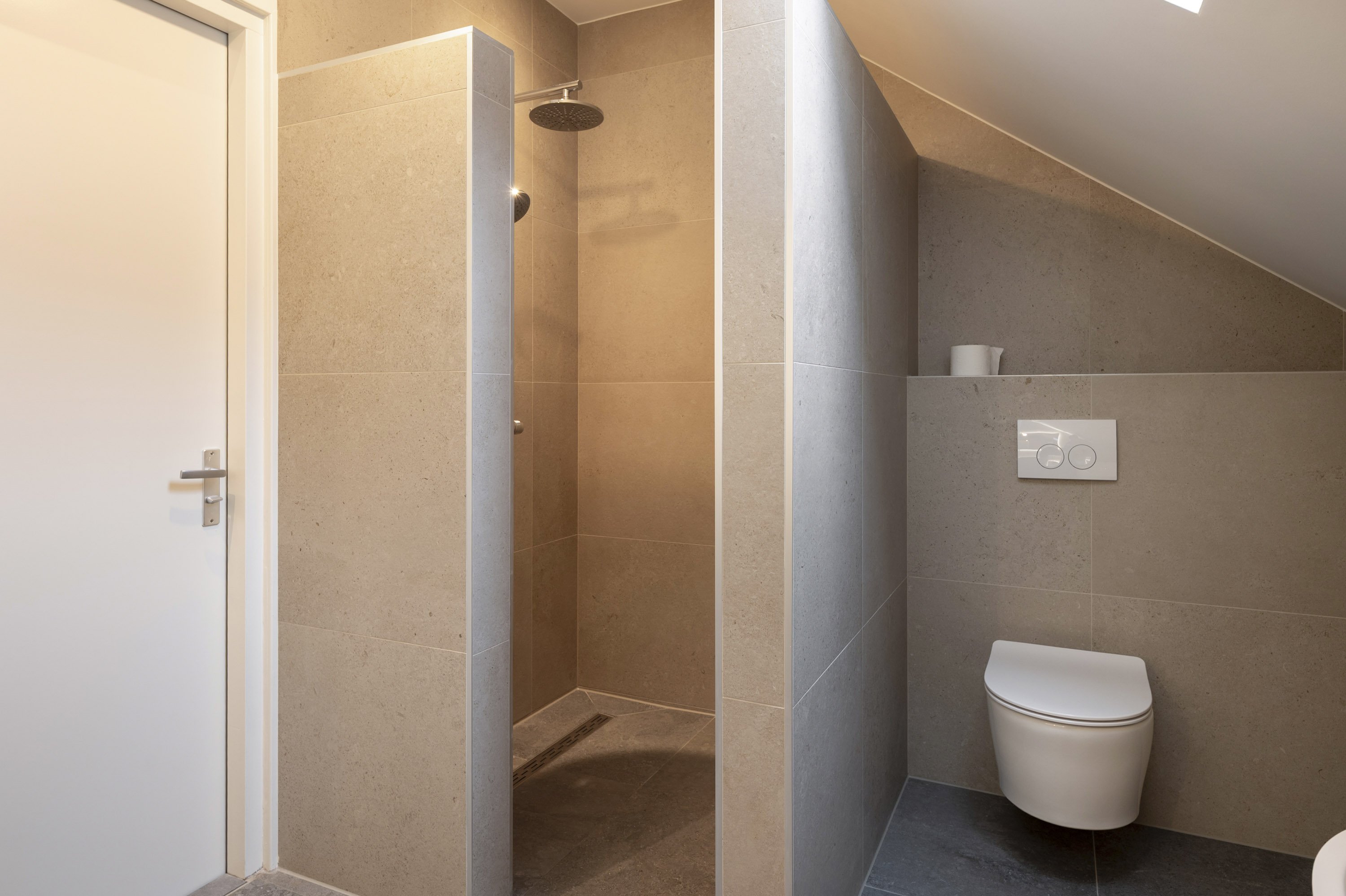 Slaapkamer 2.71/5.16 met bergkast en toegang naar de 2e badkamer voorzien van inloopdouche, dubbele wastafel, ligbad en hangcloset. De badkamer en slaapkamer zijn eveneens voorzien van vloerverwarming.