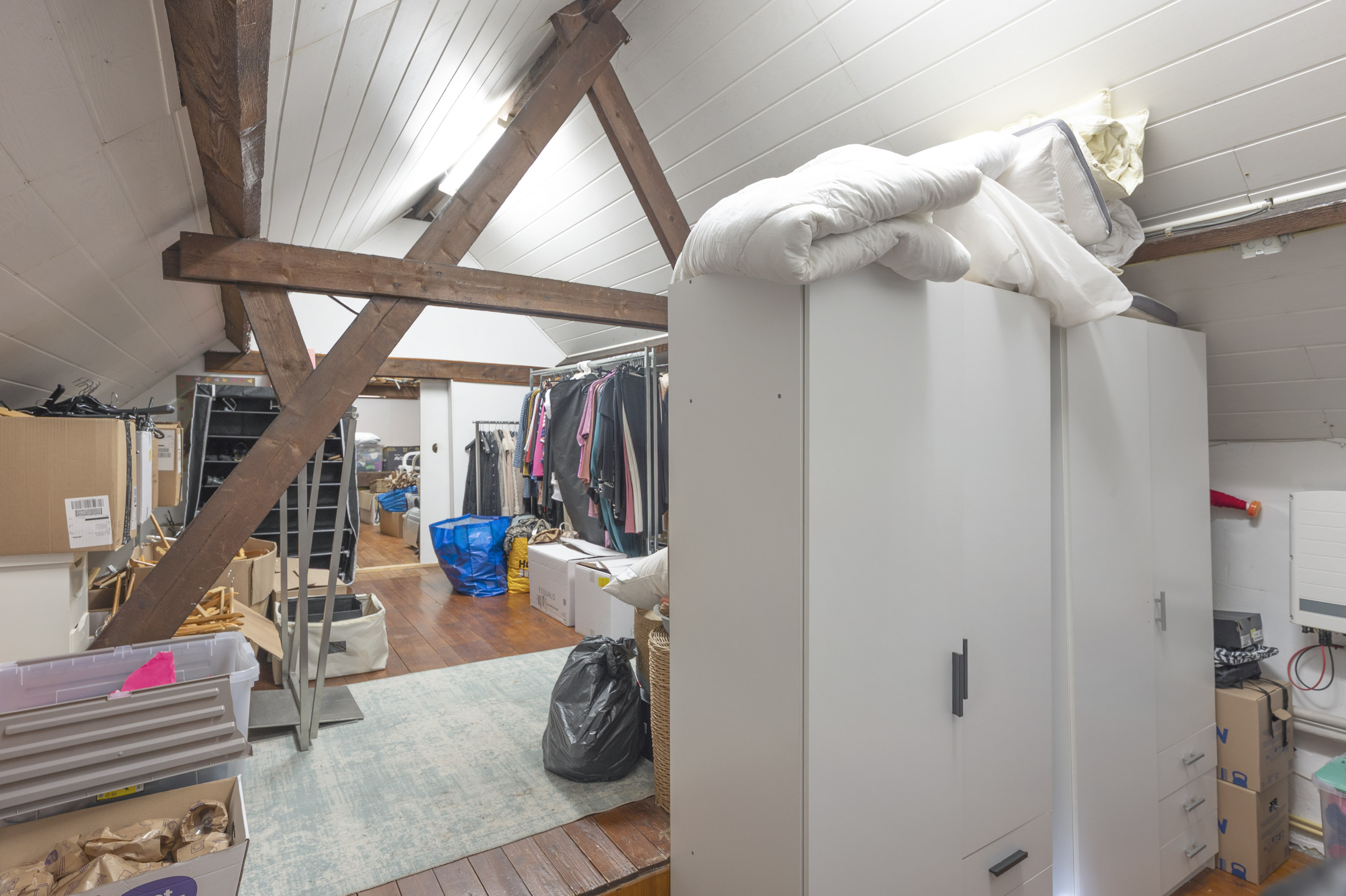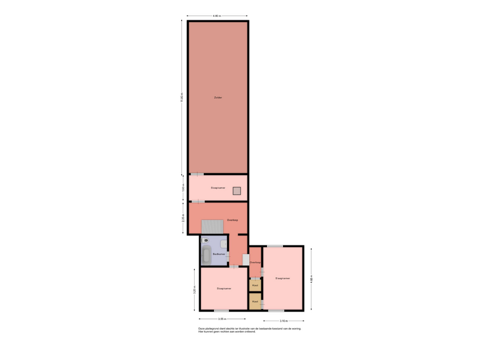 De verdieping beschikt over drie ruime slaapkamers van respectievelijk (4.39x2.00, 3.23x3.54 en 4.68x3.90) allemaal voorzien van een parketvloer. Badkamer (2.42x2.00) met ligbad, wastafel en toilet. De zolder (12.45 x 4.30 m) biedt volop mogelijkheden om extra slaapkamers te realiseren.