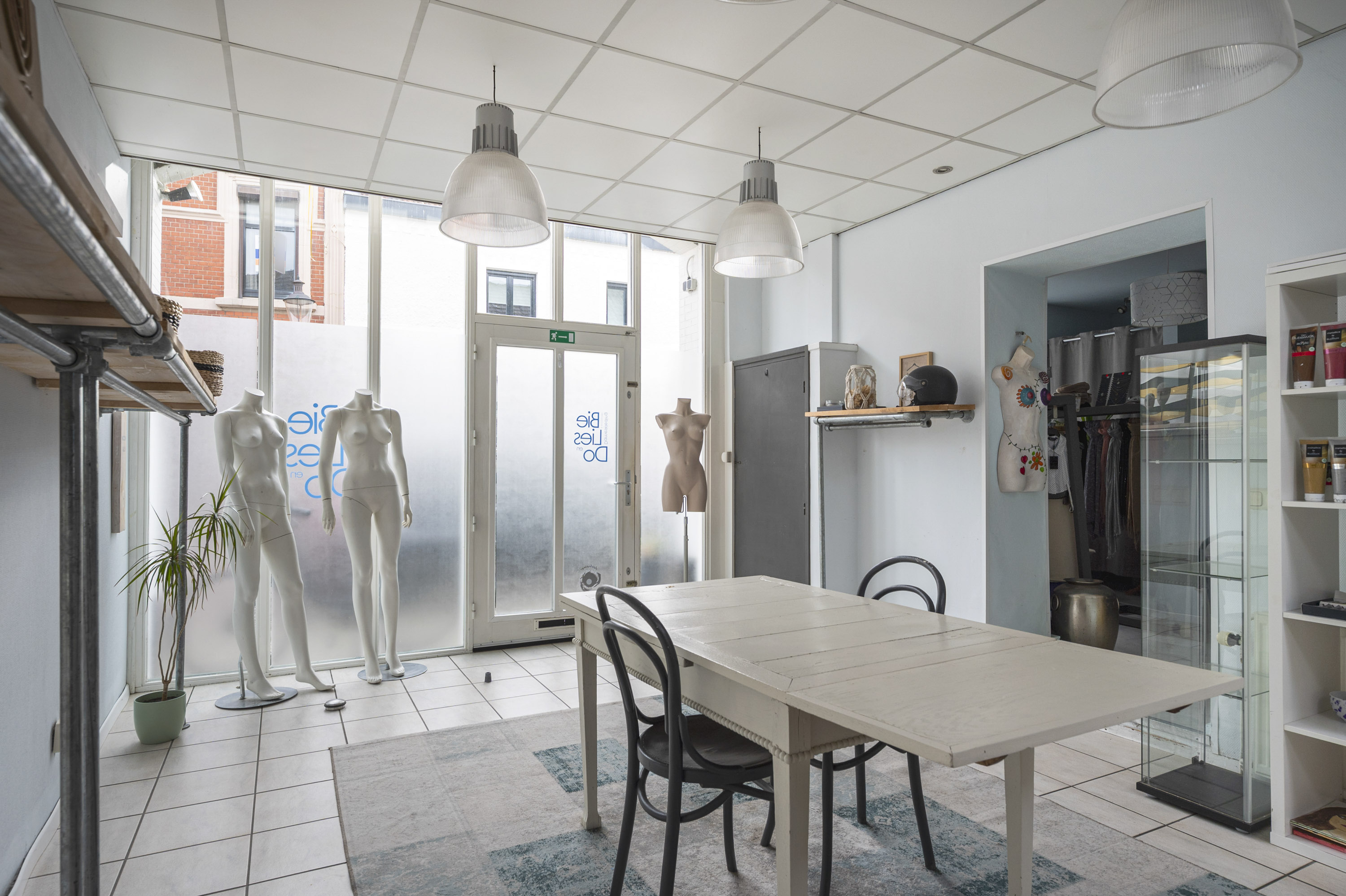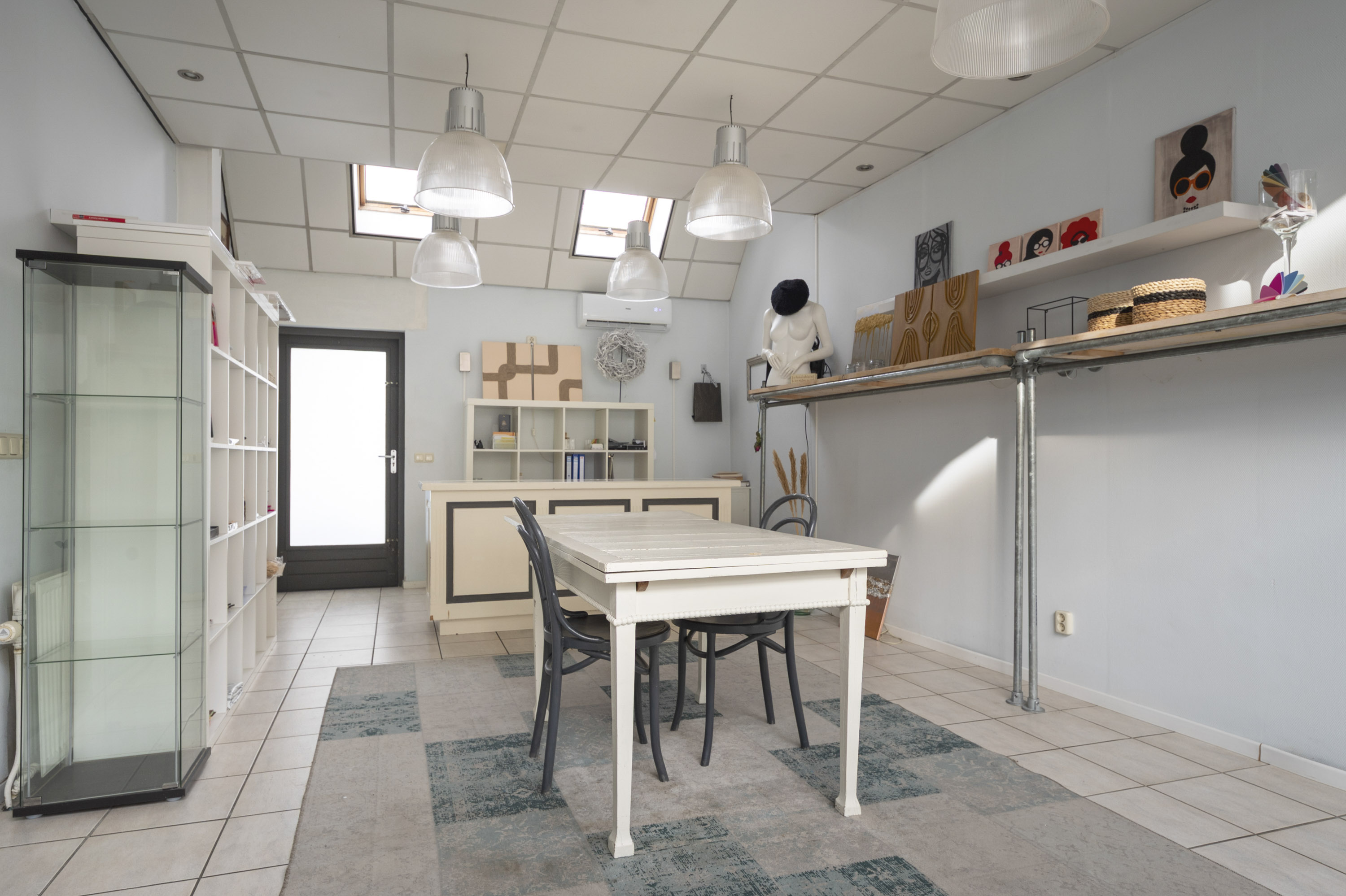 Bij binnenkomst valt de royale winkelruimte op (7.12/4.00) en (5.55/3.54) voorzien van plavuizenvloer, airco en een gemoderniseerde meterkast. Vanuit hier is er toegang tot het tussenportaal met toegang naar de sfeervolle leefkeuken (4.75 x 3.11 m) met functionele opstelling, inclusief 4-pits gaskookplaat, afzuigkap, oven en koelkast. Een praktische bergruimte met aansluitingen voor wasapparatuur completeert het geheel. Hal met toiletruimte die voorzien is van een closet met fontein, Vanuit de hal heeft u toegang naar de binnenplaats en de ruime woonkamer (10.15 x 4.52 m) met parketvloer, houtkachel en airco biedt een gezellige leefruimte met directe toegang tot de tuin via de schuifpui.