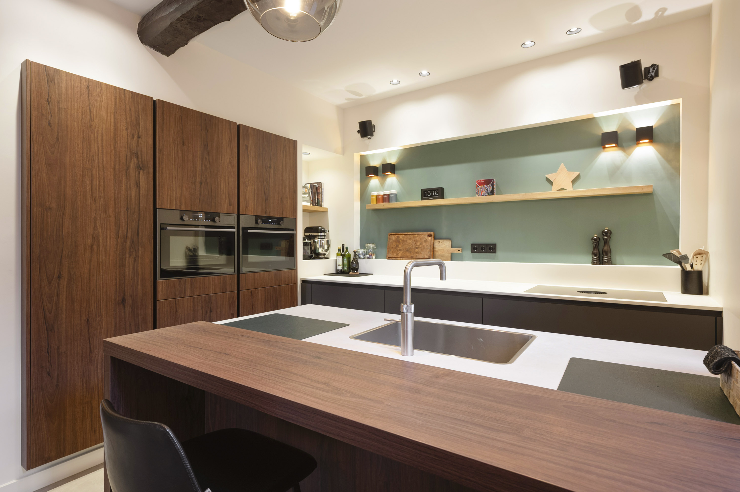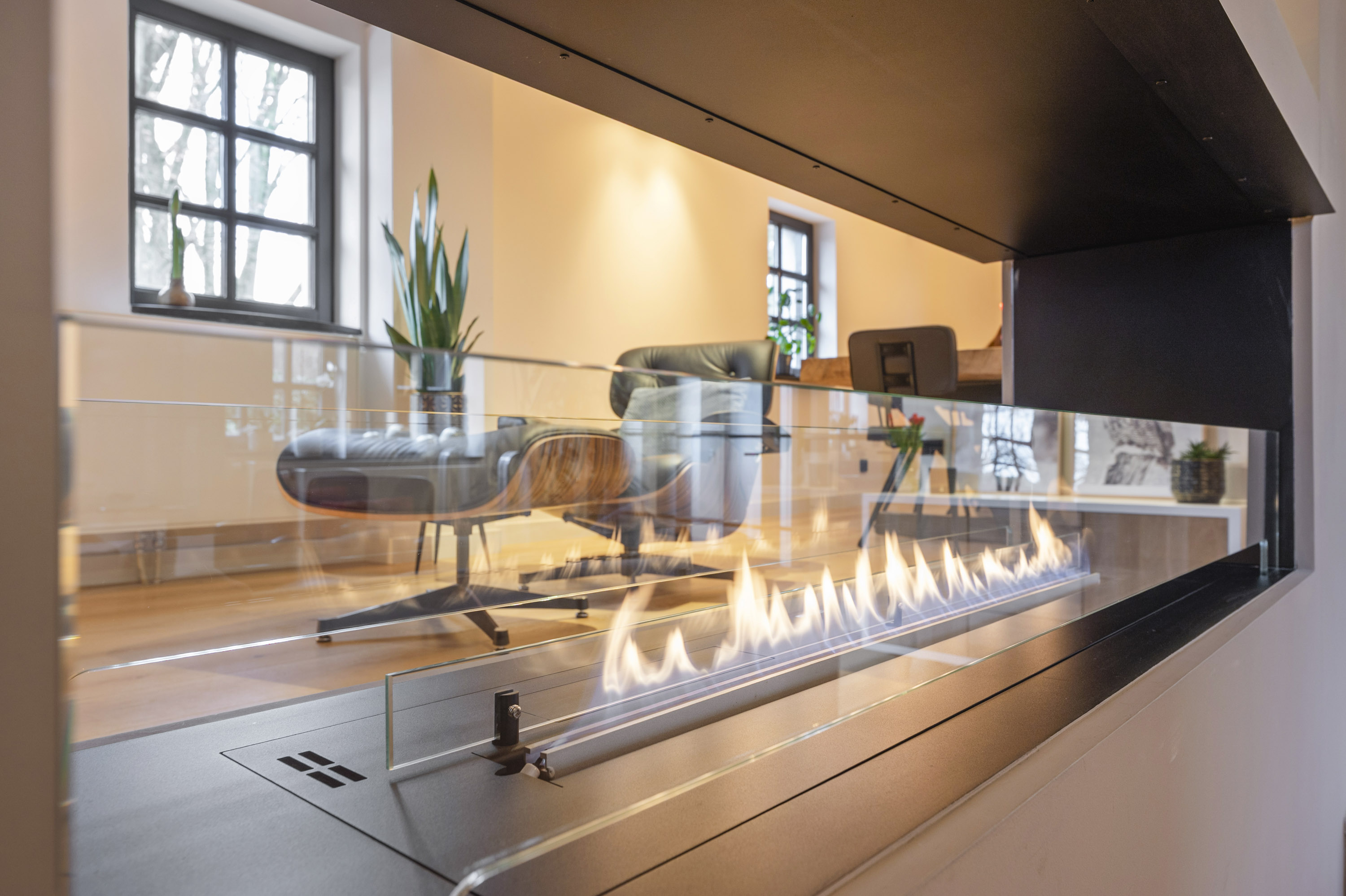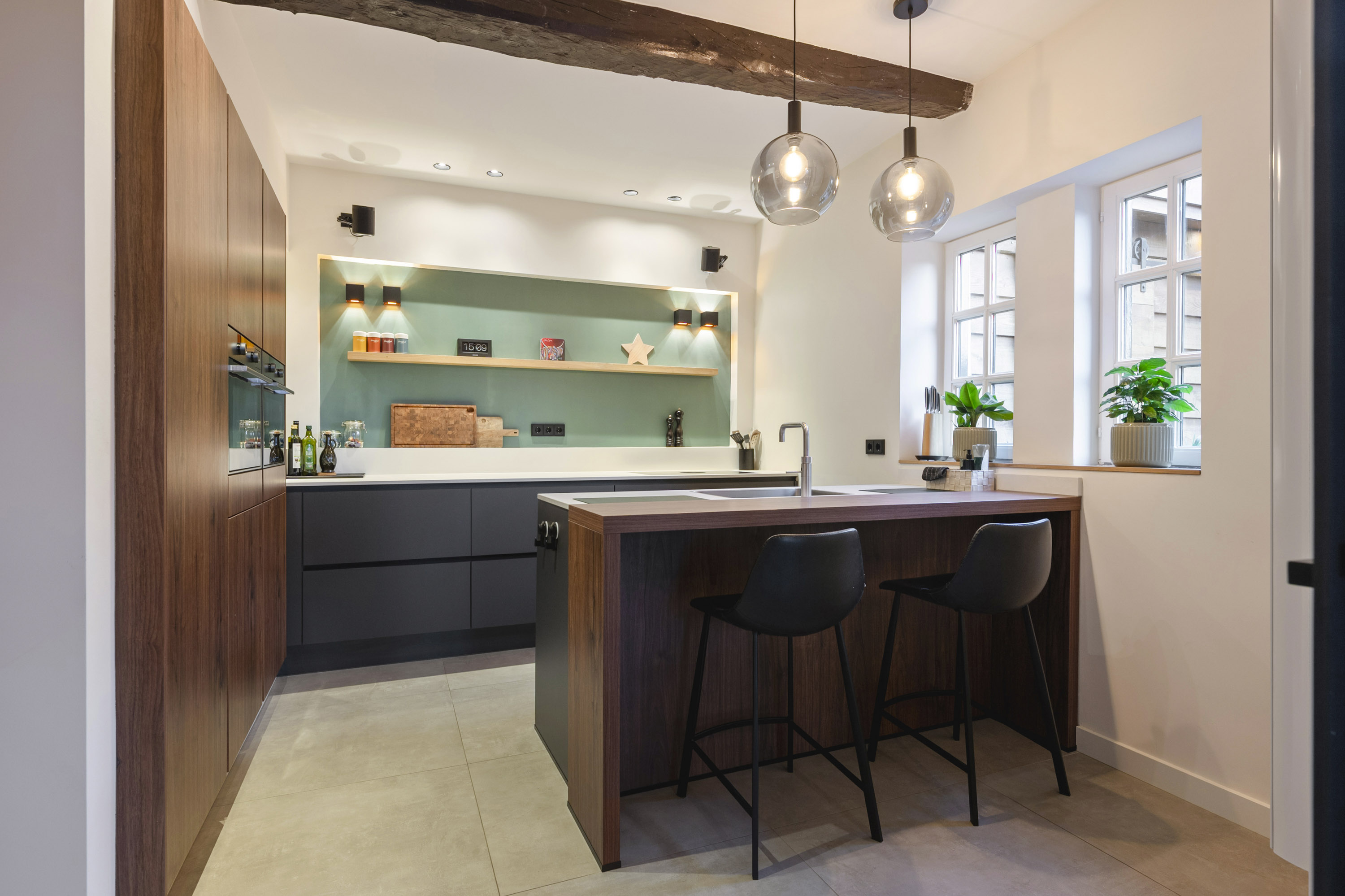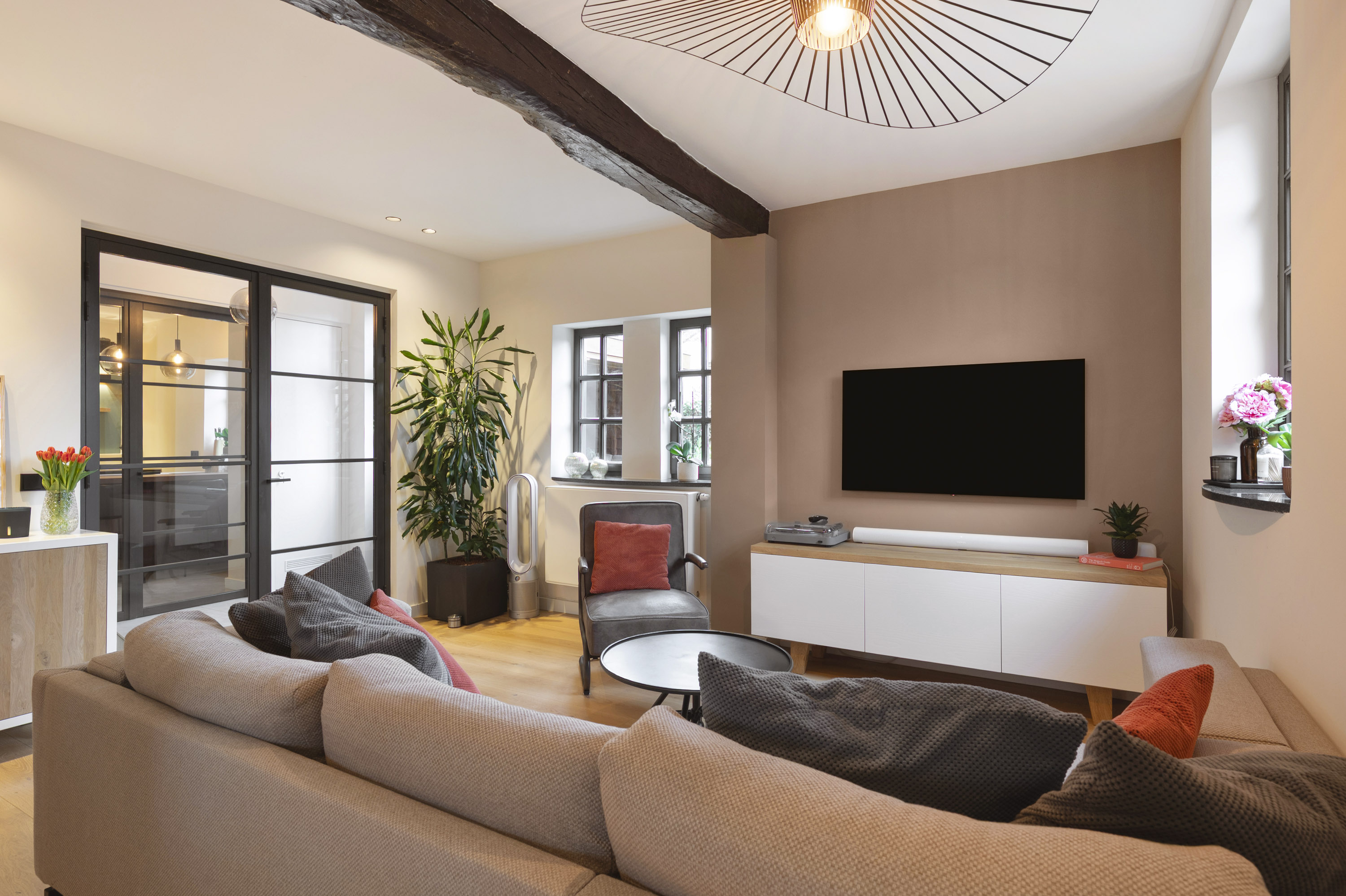 Mooie ruime ontvangsthal met gastentoilet, ruimte voor garderobe, werkkamer (ideaal voor thuiswerkplek of hobbykamer) en toegang tot de living. De woning beschikt over een tweede entree met mooie trap naar de eerste etage, de meterkast en een doorkijk naar keuken en living middels glazen deuren. De keuken is geheel gemoderniseerd en naast de nodige kastruimte en een fraai eiland voorzien van de volgende inbouwapparatuur; inductie kookplaat met geïntegreerde afzuiging (BORA), Quooker kraan, vaatwasser, koelkast, stoomoven en combi oven-magnetron. Vanuit de keuken is er toegang tot een leuke gewelfde kelder, een ruime bijkeuken (met aansluitpunten voor wasapparatuur) en een eetkamer. De living is een ware eye-catcher door onder andere de speelse indeling, de fraaie eikenhouten parketvloer en een mooie doorkijkhaard. De ruimte is ingedeeld tot een zitkamer/tv hoek en een iets hoger gelegen eetkamer met grote tafel.