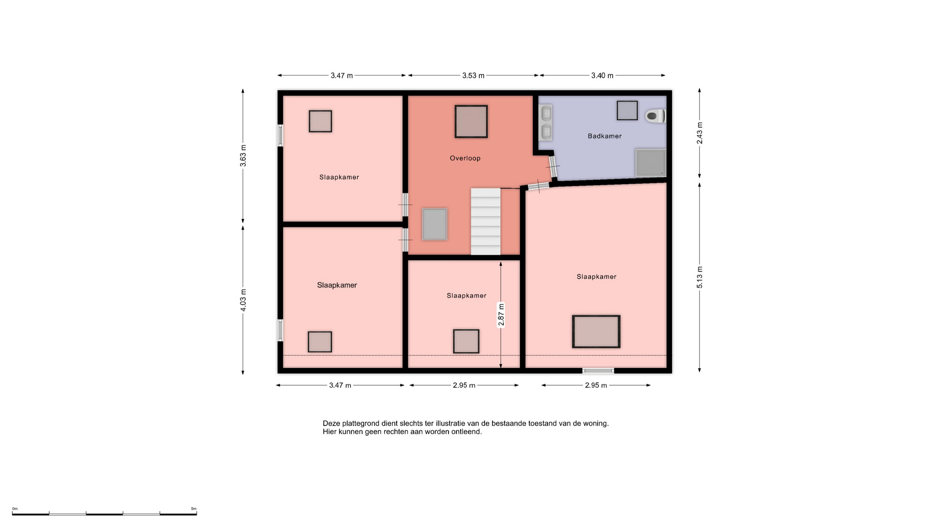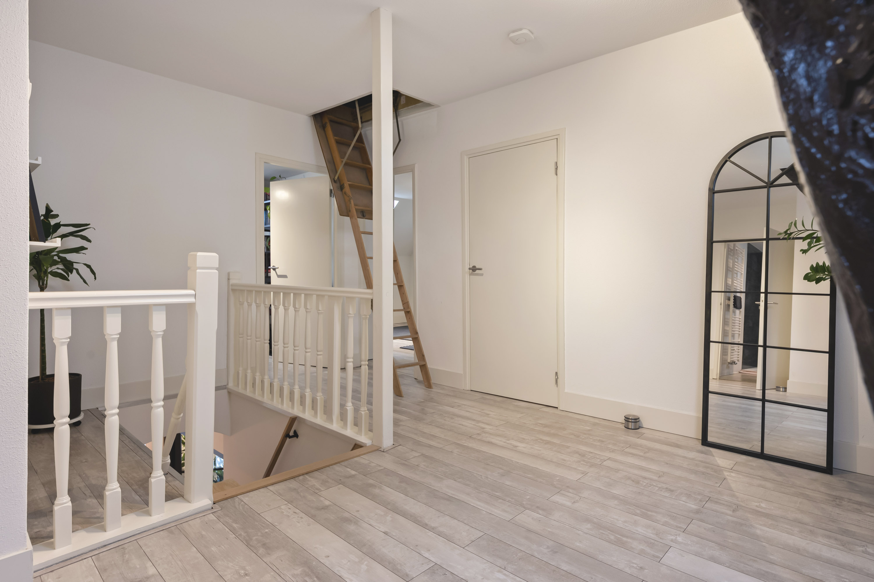 Ruime overloop met toegang tot de badkamer (voorzien van inloopdouche, toilet en twee wastafels met wandmeubel) en 4 grote slaapkamers (zie de beschikbare plattegrond voor de individuele maatvoering). De plafonds van de kamers zijn voorzien van isolatie net als toegepaste isolatie onder de huidige laminaatvloer.