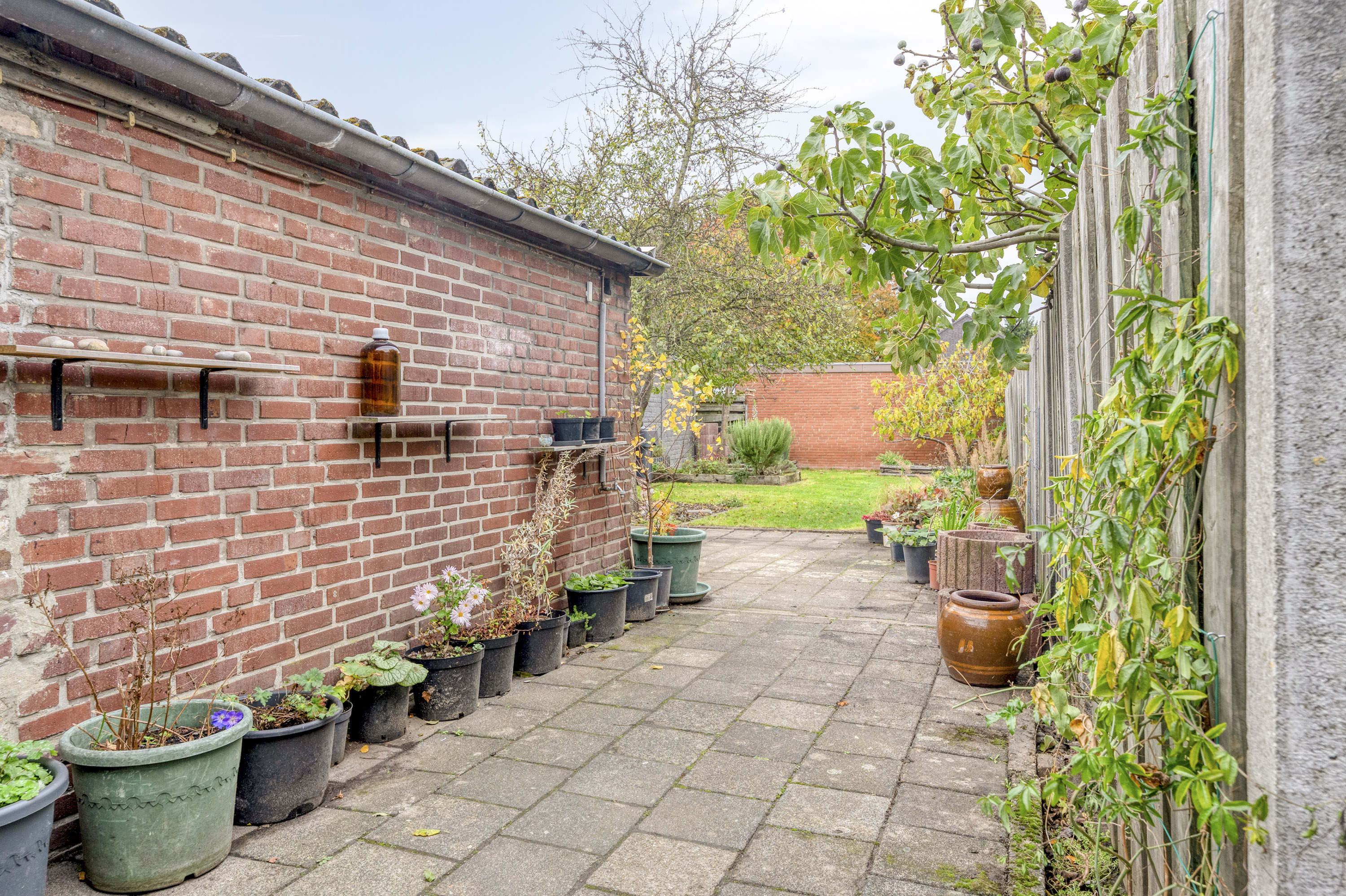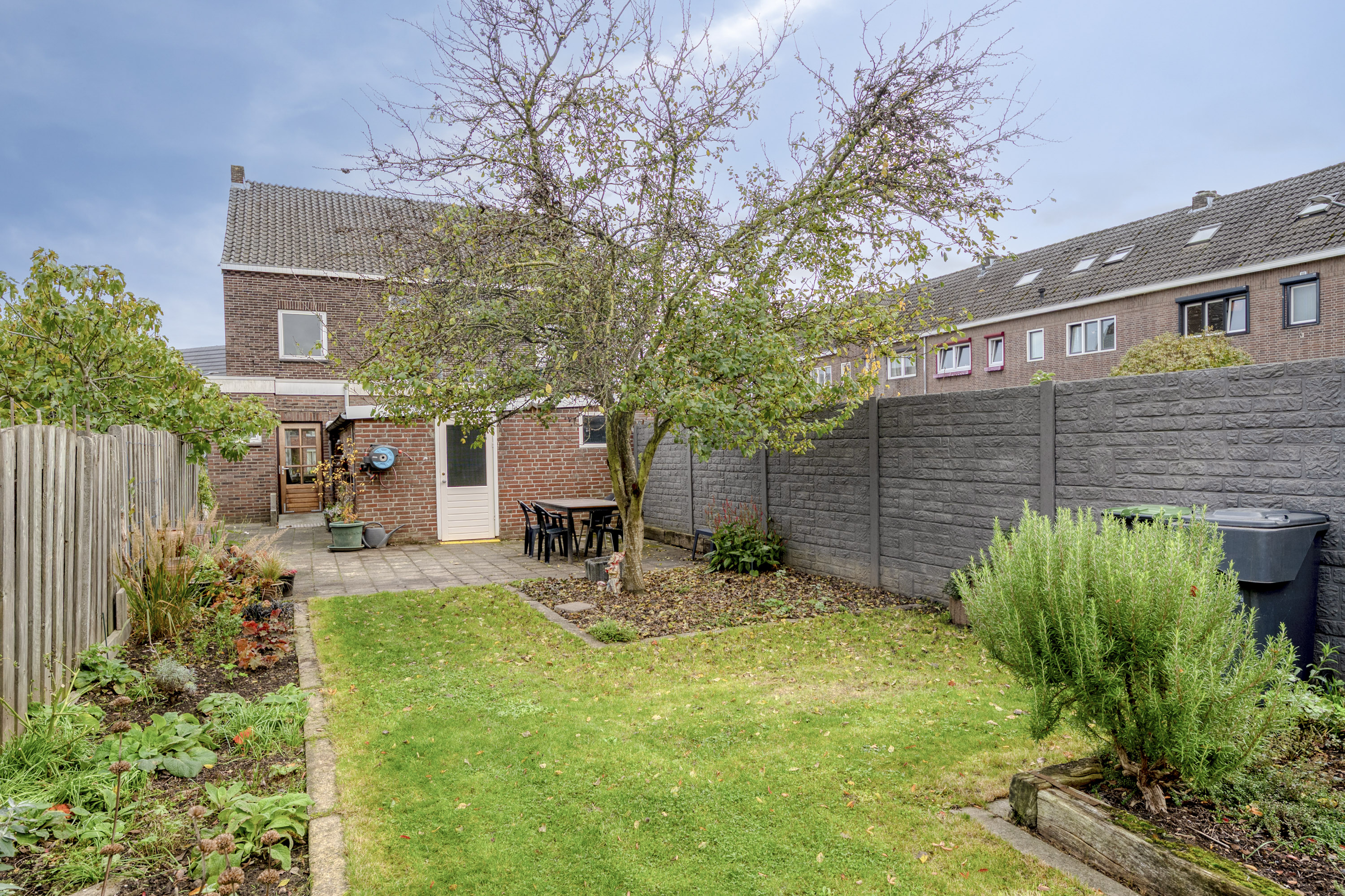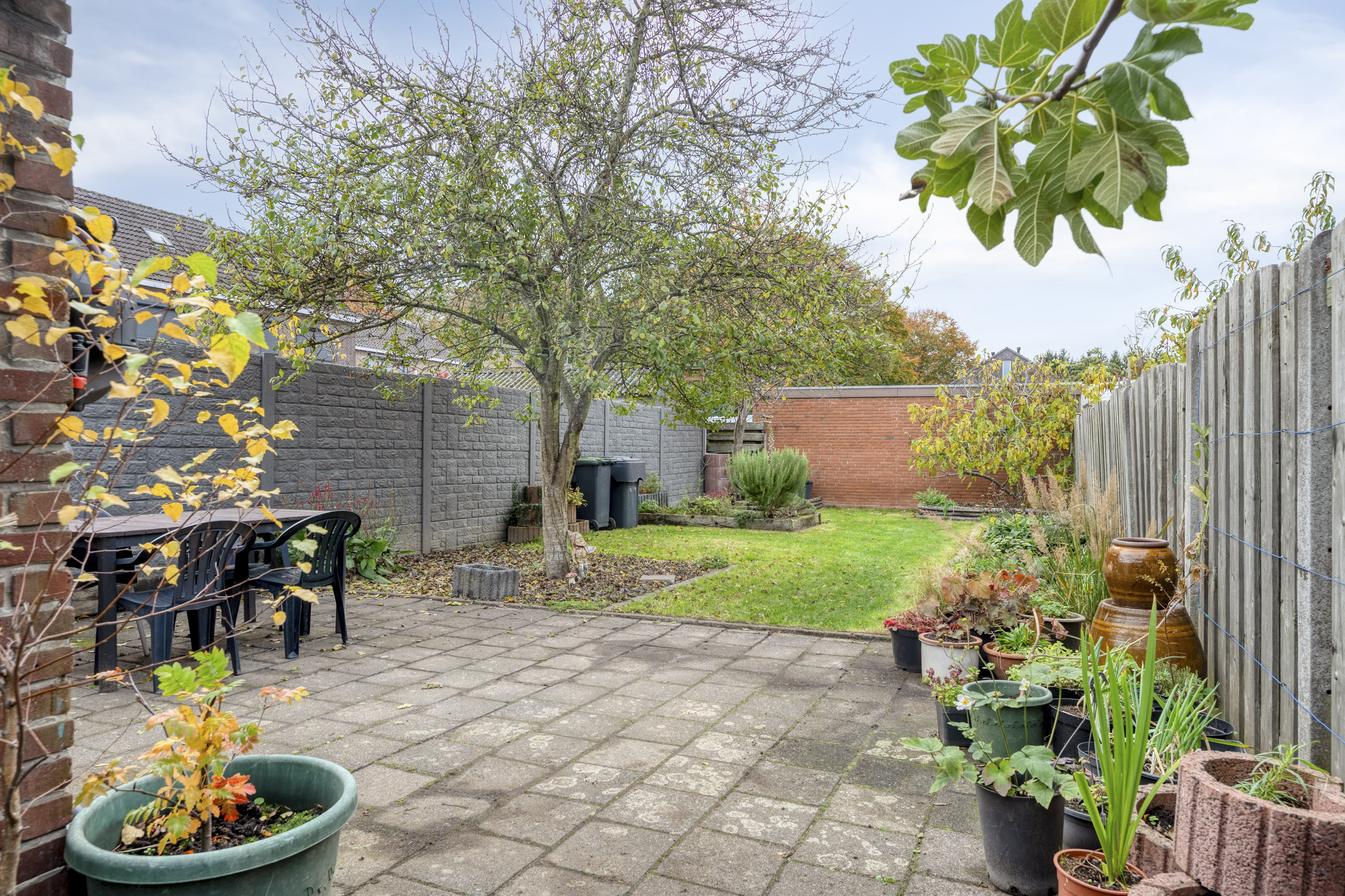 De achtertuin is mooi ruim van opzet met terras, gazon en tevens toegang tot de garage (deze is ook te bereiken vanuit de Vouerweg). De tuin biedt aangename bezonning en privacy.