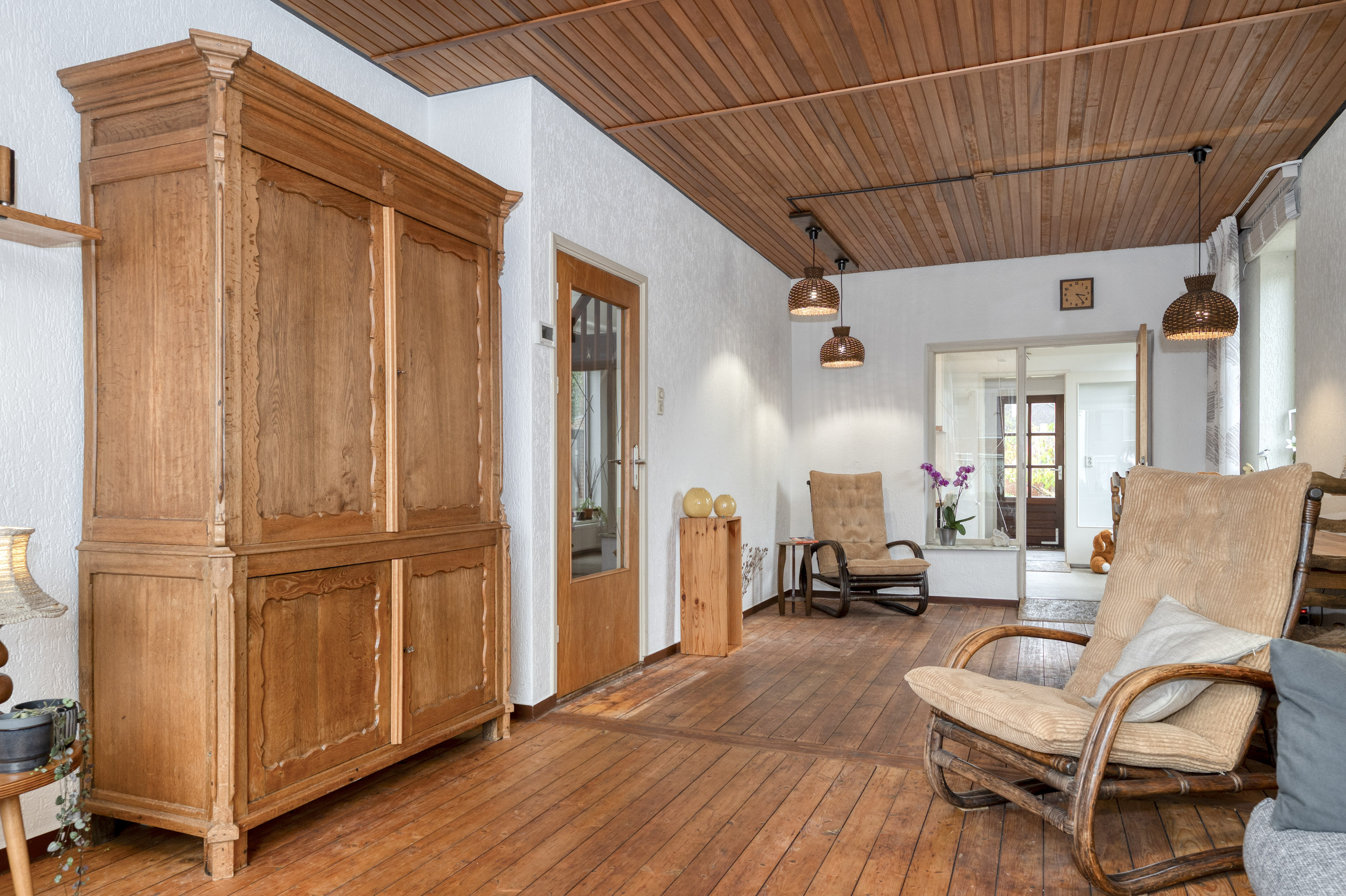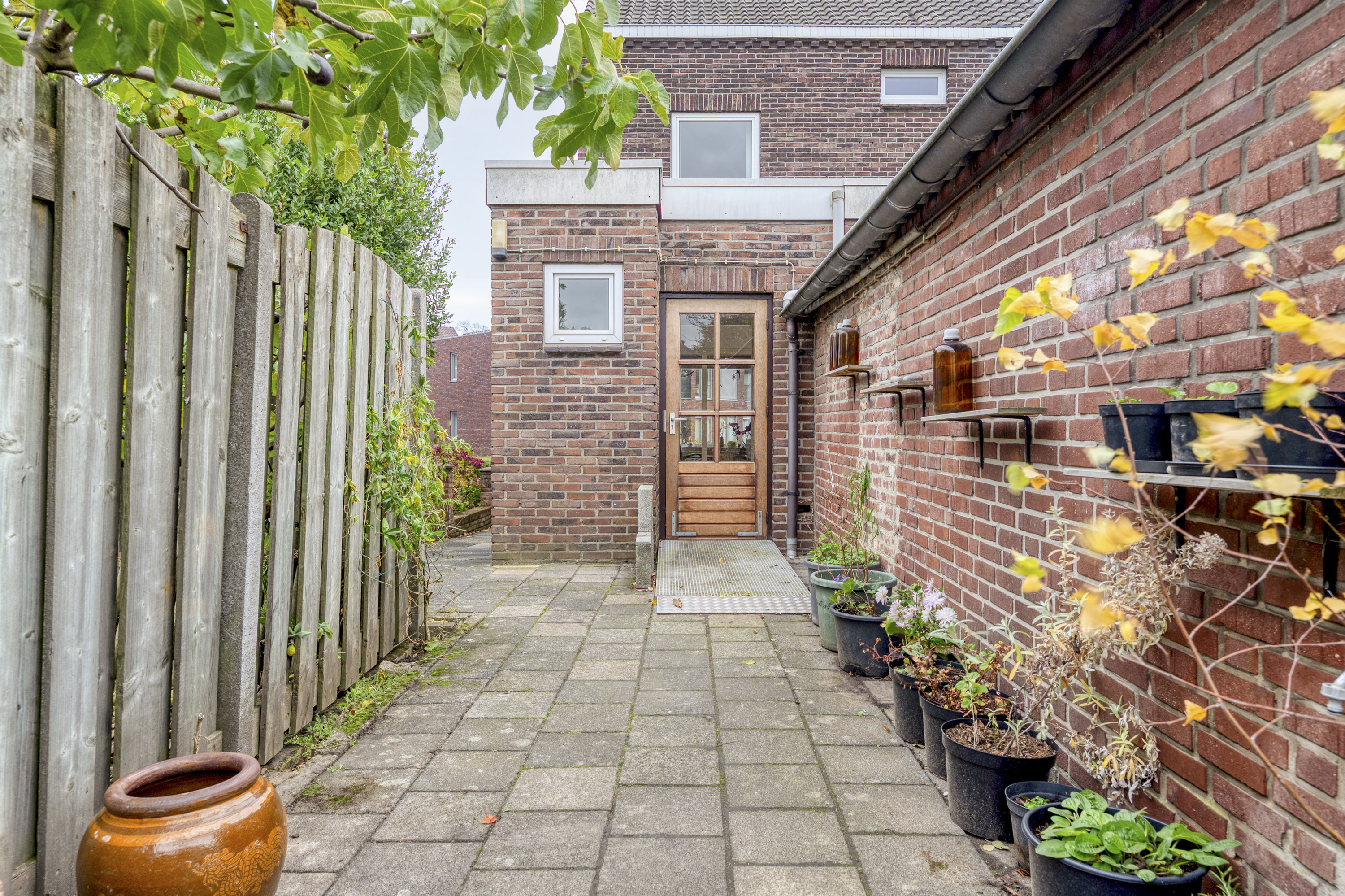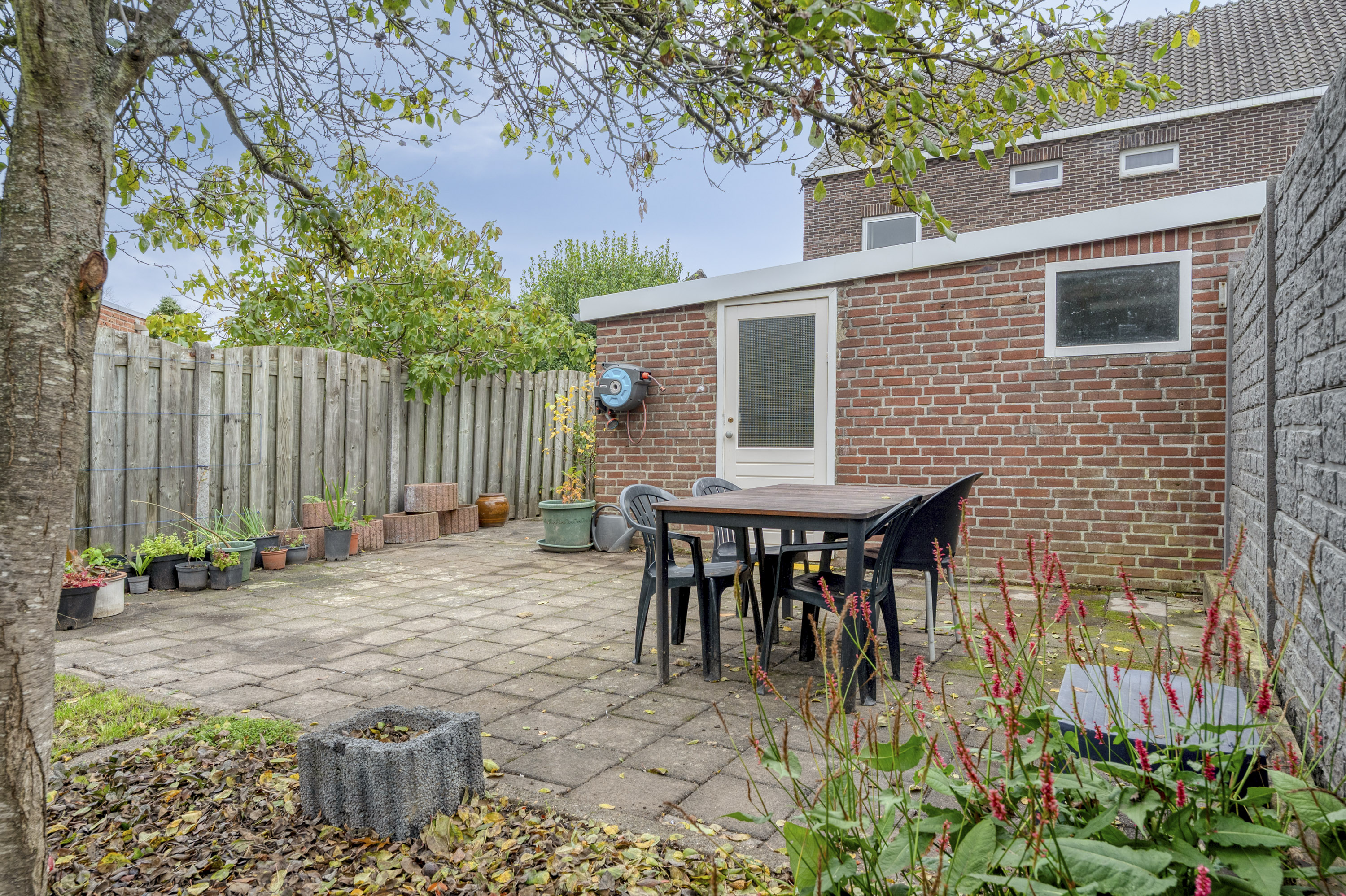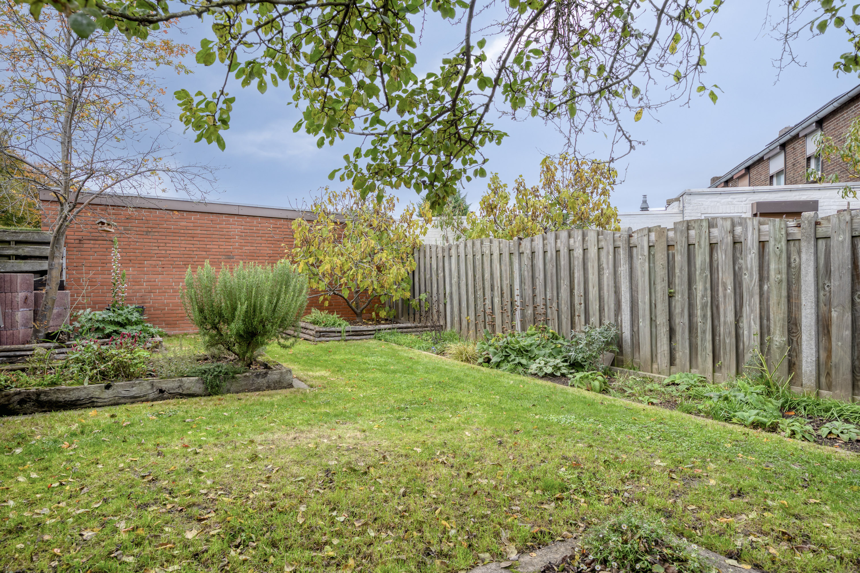 De achtertuin is mooi ruim van opzet met terras, gazon en tevens toegang tot de garage (deze is ook te bereiken vanuit de Vouerweg). De tuin biedt aangename bezonning en privacy.