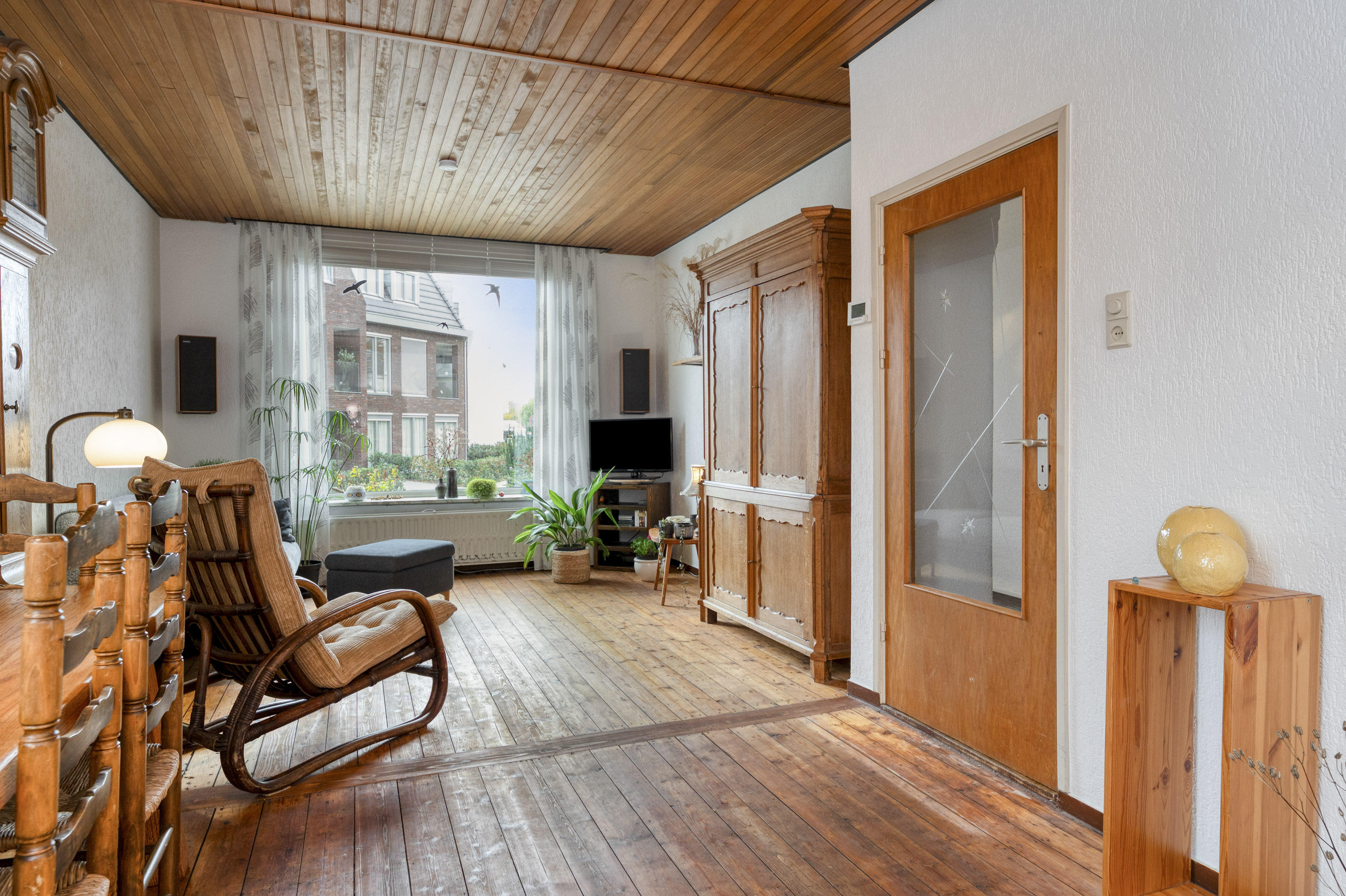 Hal/entree met meterkast, mooie trap naar de eerste etage, karakteristieke granietvloer en toegang tot keuken en woonkamer. De woonkamer biedt een mooi vrij zicht aan straatzijde en de grote ramen geven veel lichtinval. De keuken is eveneens voorzien van een mooi groot raam en een lichtkoepel. Naast de nodige kastruimte is de volgende apparatuur voorzien; koel-vries combinatie, inductiekookplaat met afzuigkap en een oven. Vanuit de keuken is een achtergelegen gang te bereiken met toegang tot het toilet (voorzien van zwevend closet met fonteintje) een bergkast (met opstelplaats van de cv-ketel en wasmachine) en de badkamer welke voorzien is van een ligbad, inloopdouche en een wastafel.