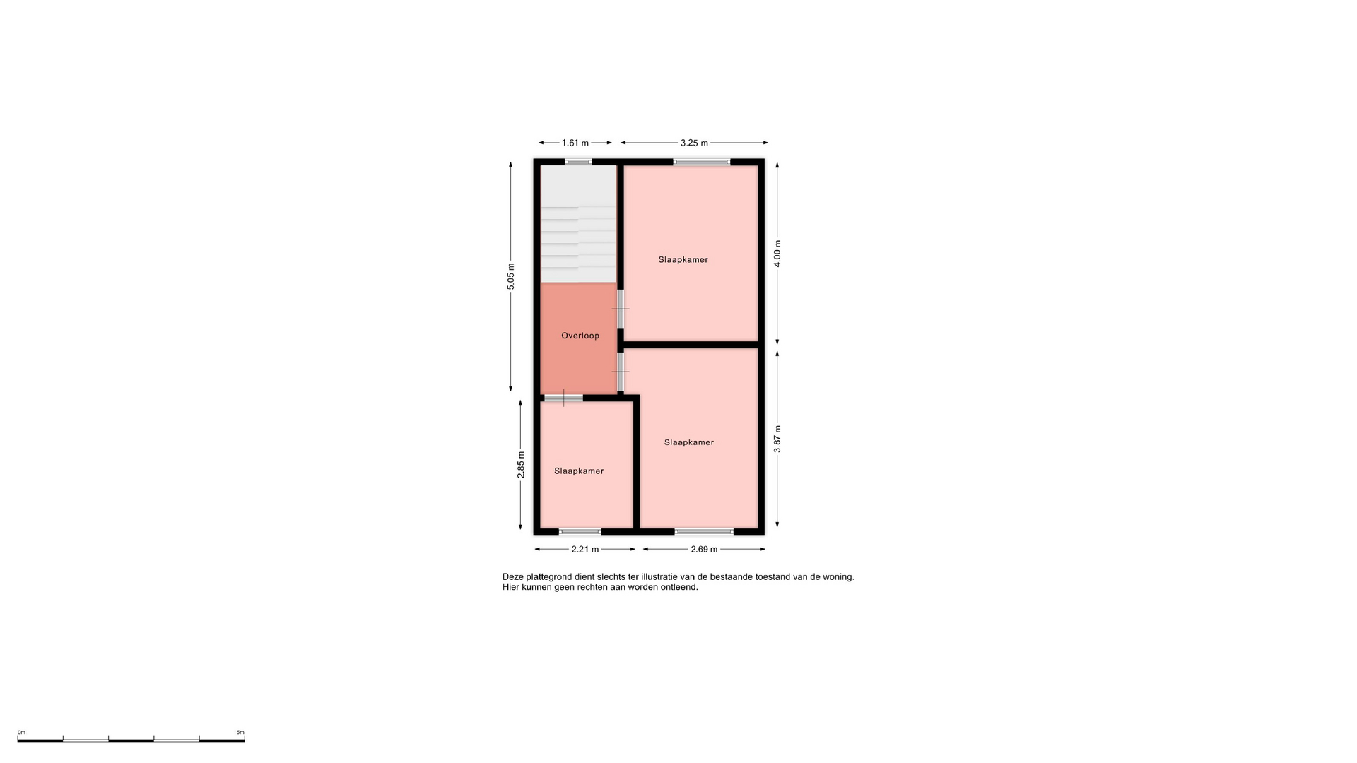 Centrale overloop met toegang tot 3 slaapkamers (zie de beschikbare plattegrond voor de maatvoering).